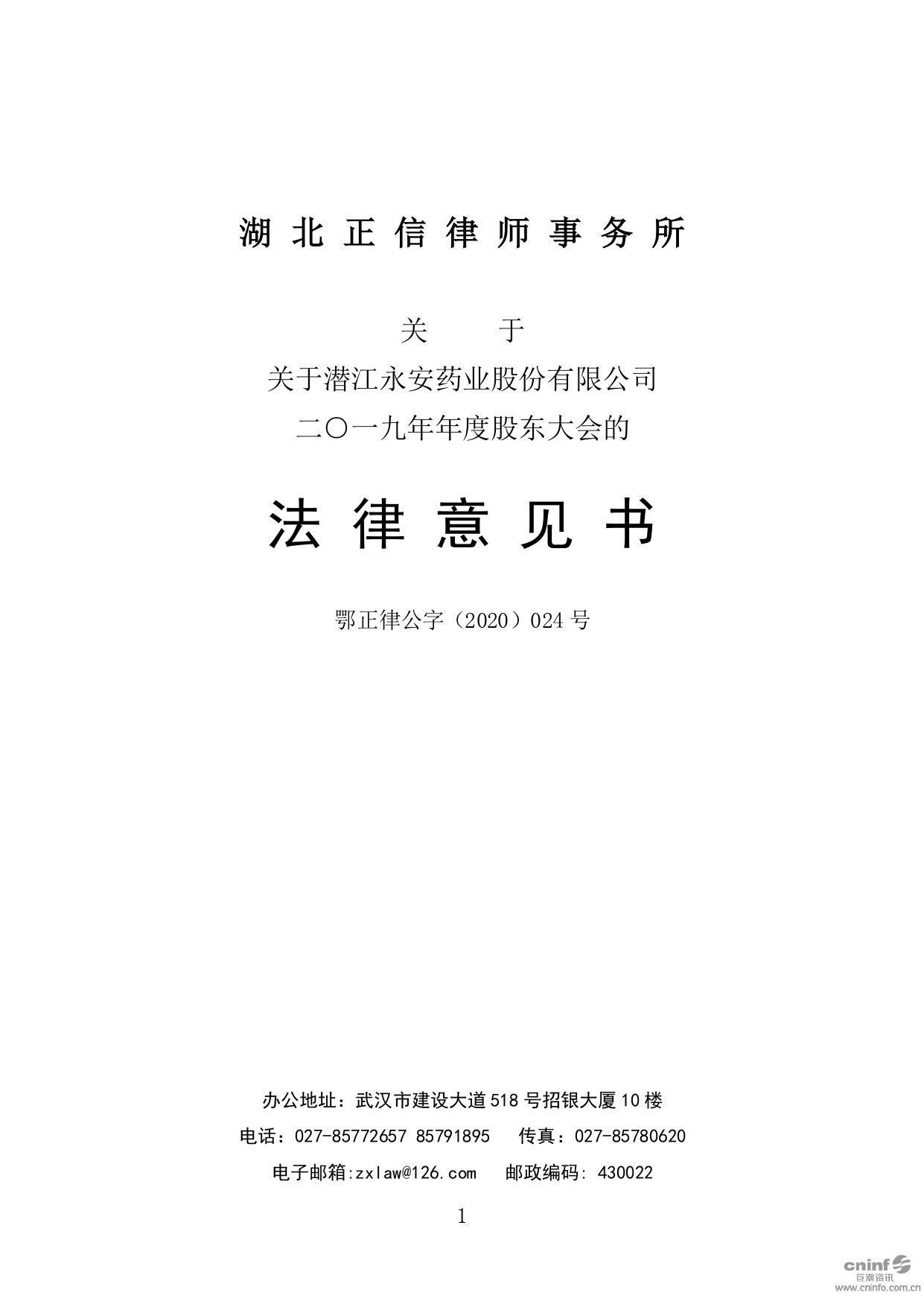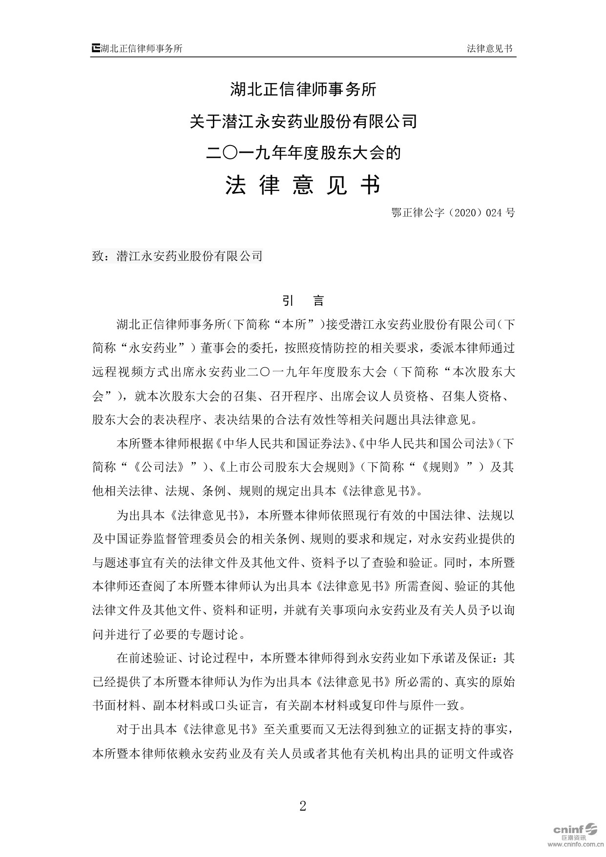 2019年年度股東大會(huì)的法律意見(jiàn)書(shū)