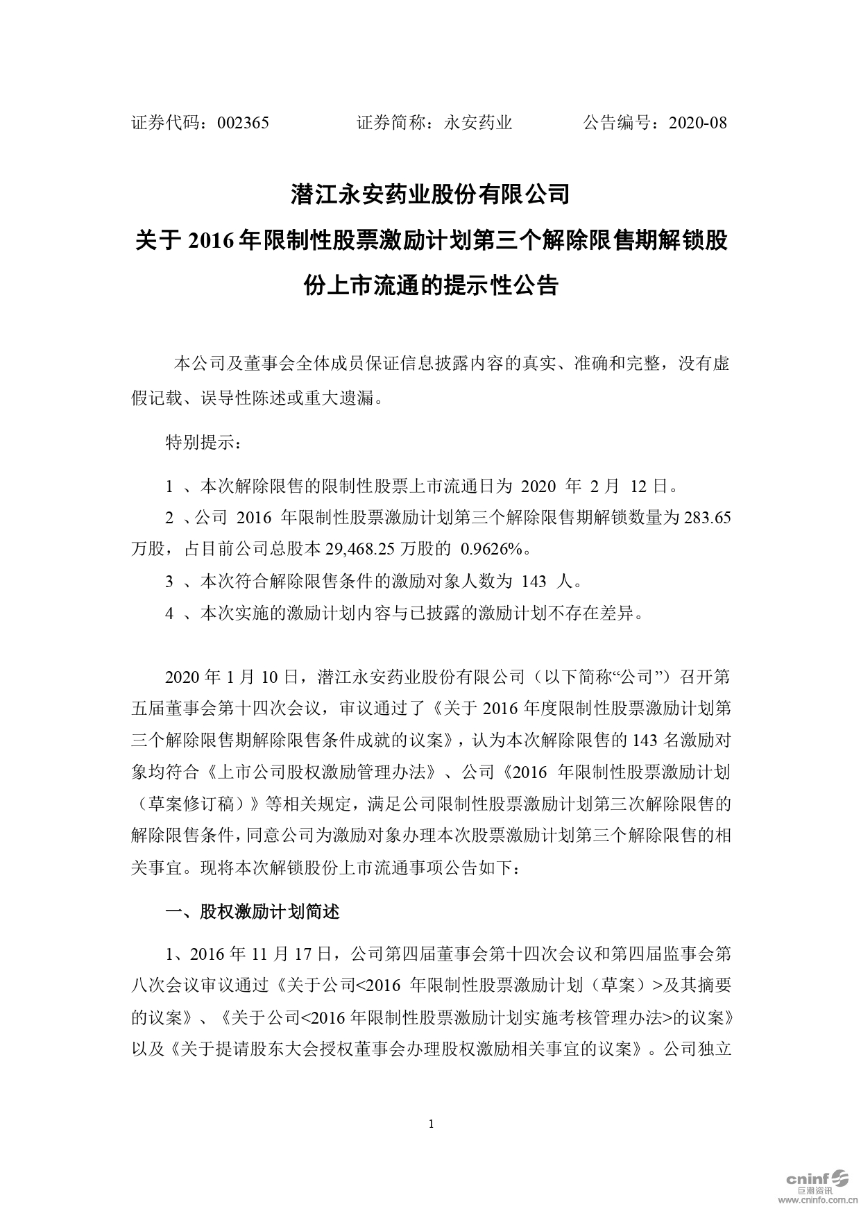 潛江永安藥業(yè)股份有限公司