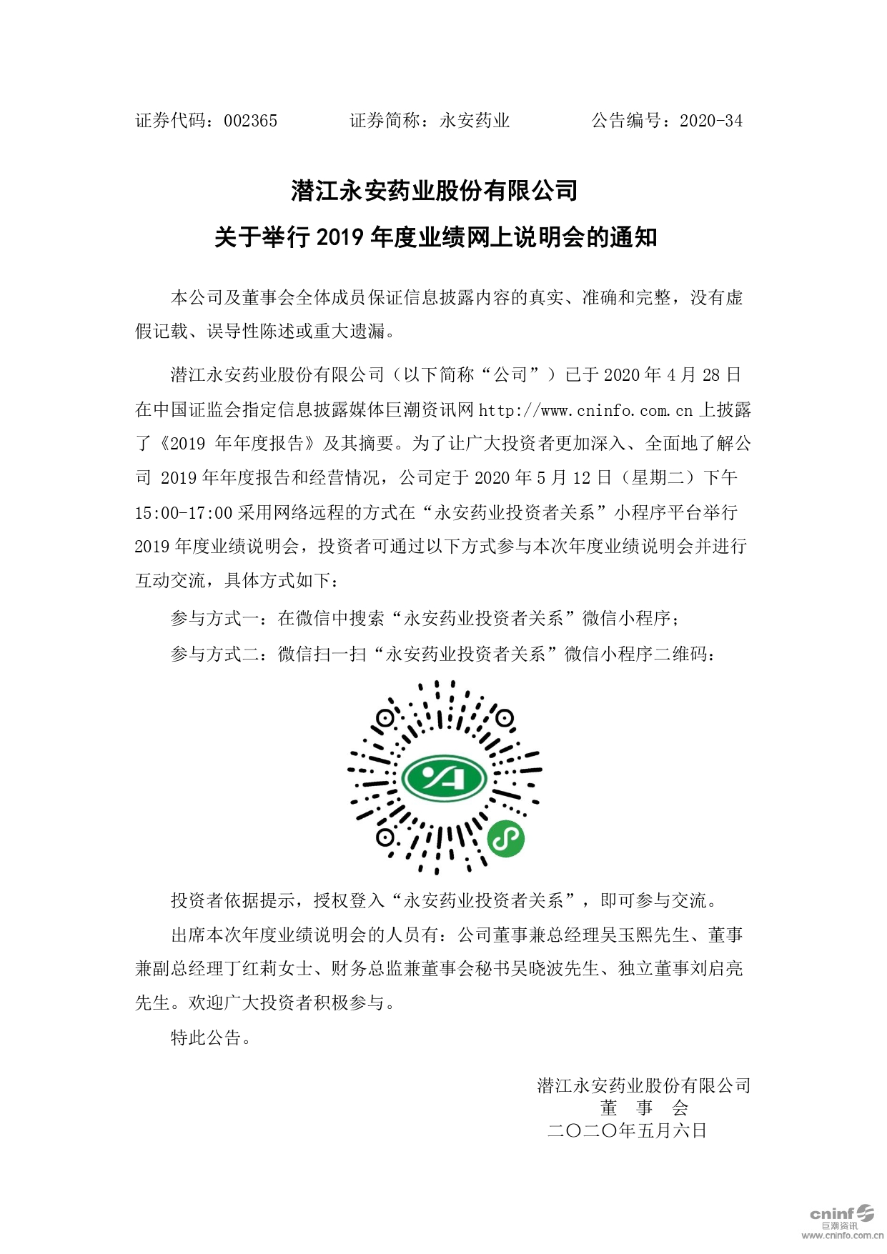 關(guān)于舉行2019年度業(yè)績網(wǎng)上說明會的通知