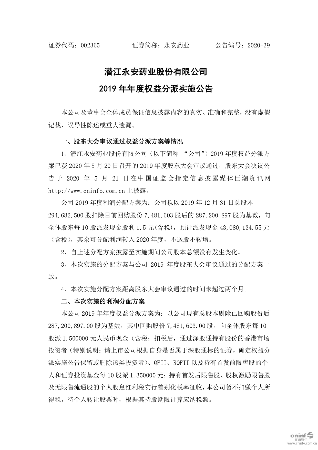 潛江永安藥業(yè)股份有限公司