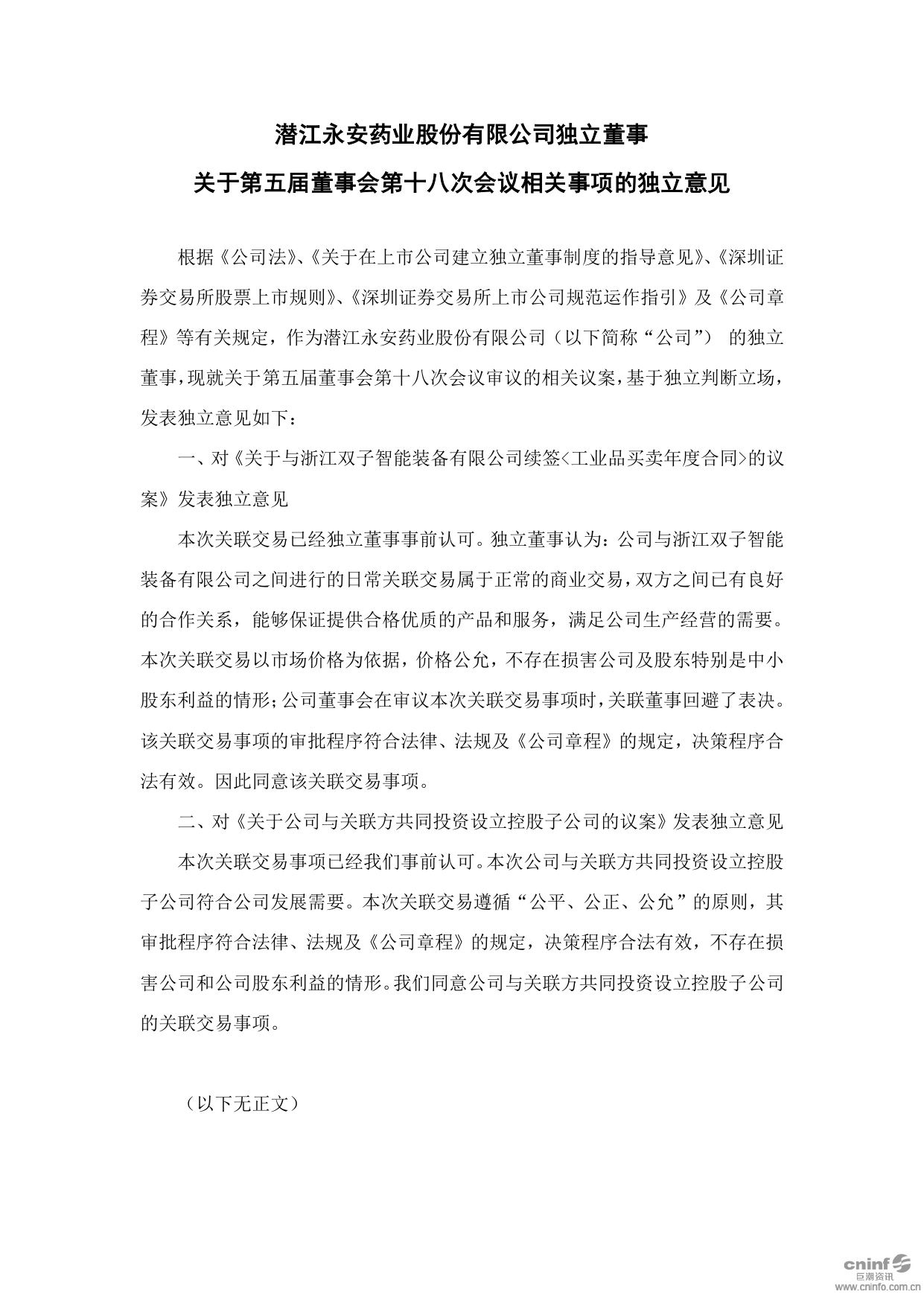 獨(dú)立董事關(guān)于第五屆董事會(huì)第十八次會(huì)議相關(guān)事項(xiàng)的獨(dú)立意見