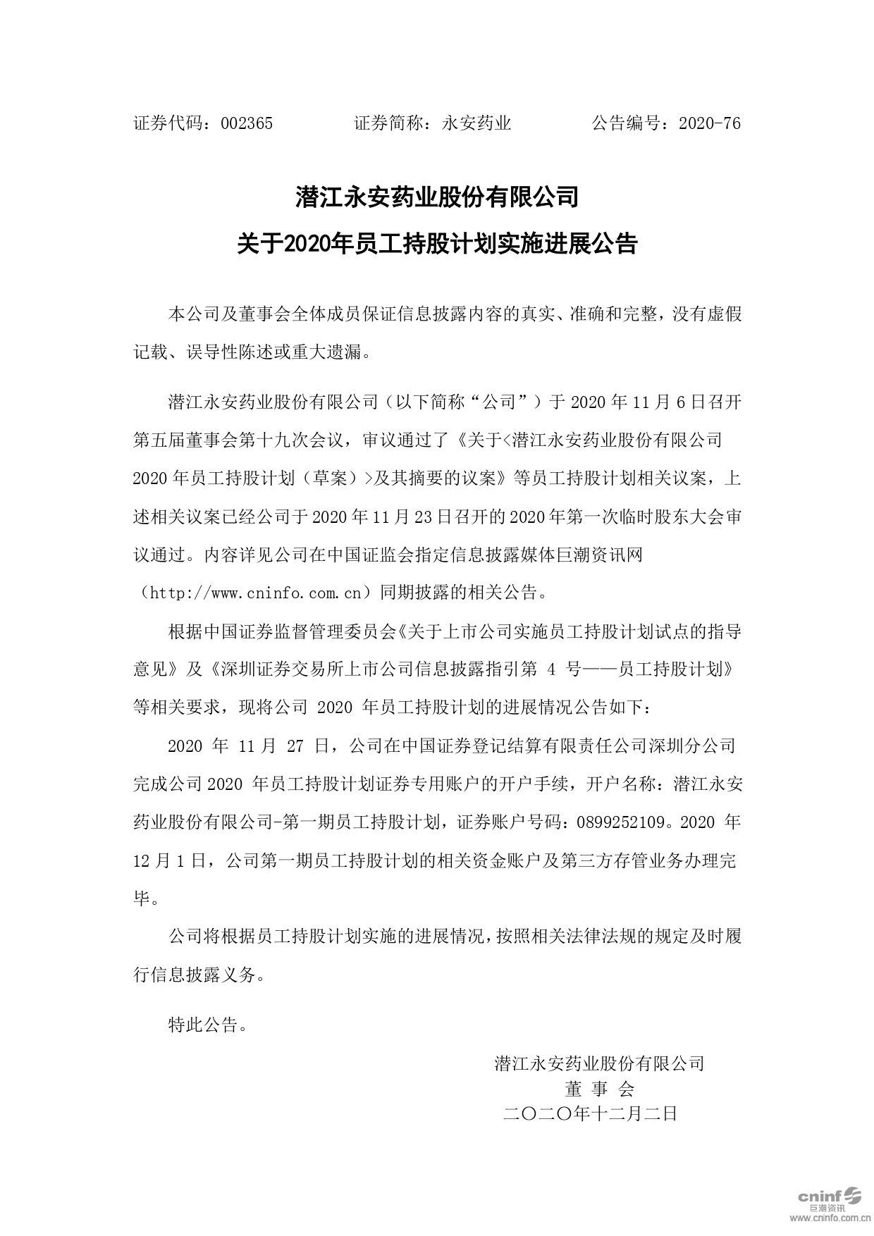 關(guān)于2020年員工持股計劃實施進(jìn)展公告