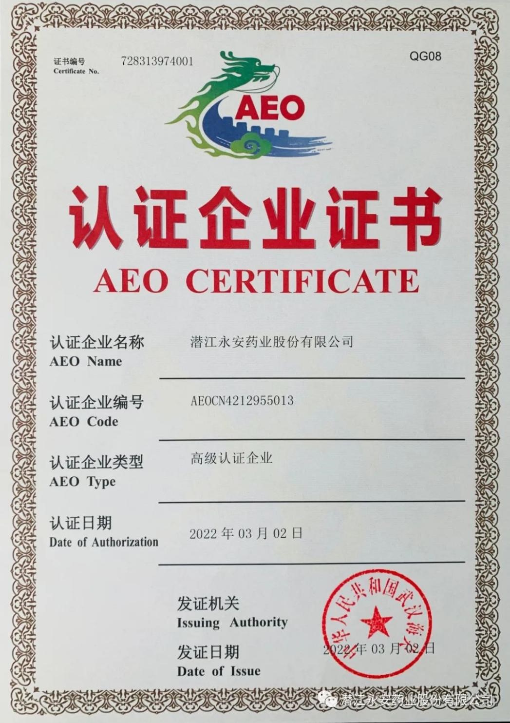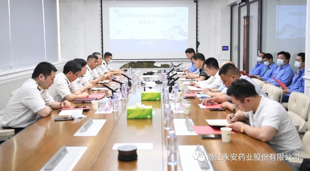 5月27日,潛江永安藥業(yè)股份有限公司隆重舉行中華人民共和國武漢海關(guān)AEO高級認(rèn)證頒證儀式!武漢海關(guān)黨委委員、副關(guān)長李燕,仙桃海關(guān)關(guān)長王政,潛江市副市長趙曜,潛江市商務(wù)局黨組書記、局長楊盛等各位領(lǐng)導(dǎo)為我公司頒發(fā)AEO高級認(rèn)證證書并發(fā)表講話