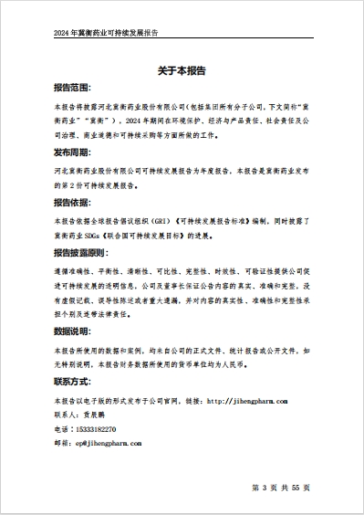 河北冀衡藥業(yè)股份有限公司2024 年可持續(xù)發(fā)展報告